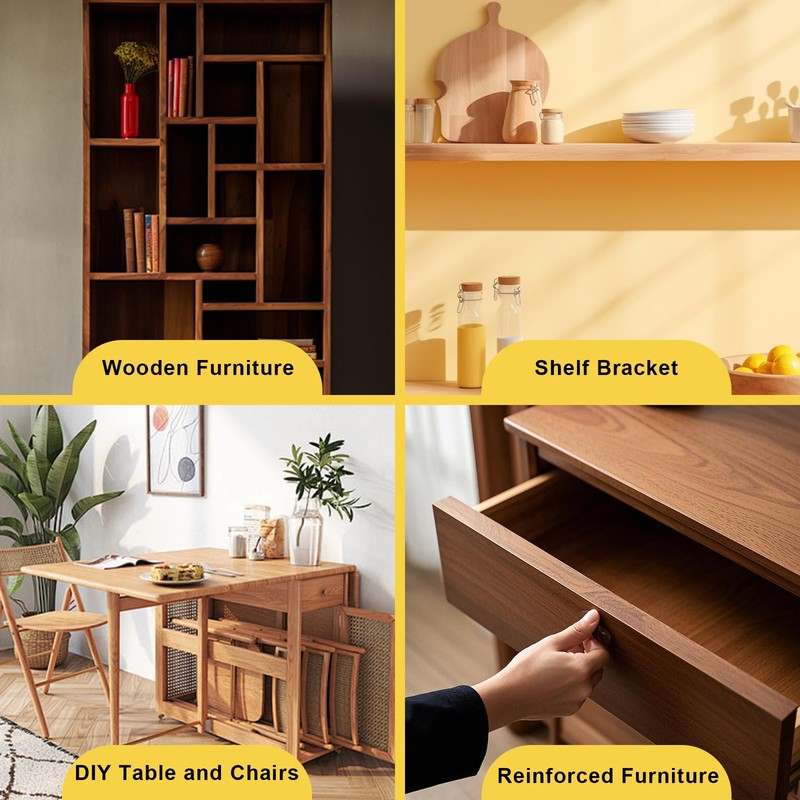 - Wide Application: Our shelf bracket can not only be used as an ideal accessory for DIY wooden furniture, but also can be used to repair loose or shaky furniture, which can help you to reinforce cabinets, chairs, drawers and other wooden furniture