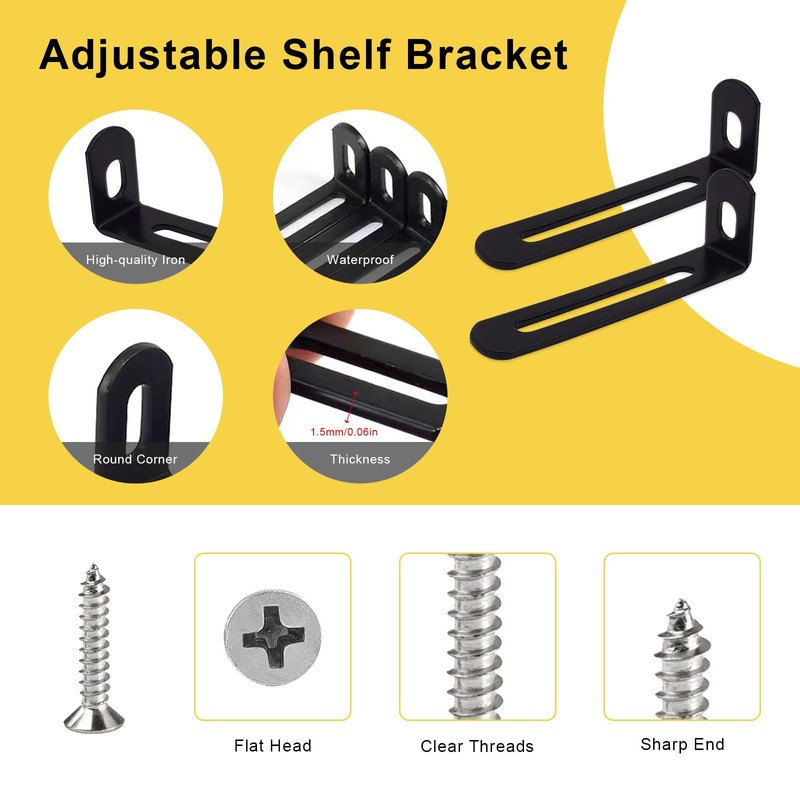 - Easy to Install: Secure the shelf support where it needs to be reinforced, then simply install the screws using a screwdriver. The two adjustable mounting slots on the bracket can be adjusted as needed. It can be perfectly hidden in corners