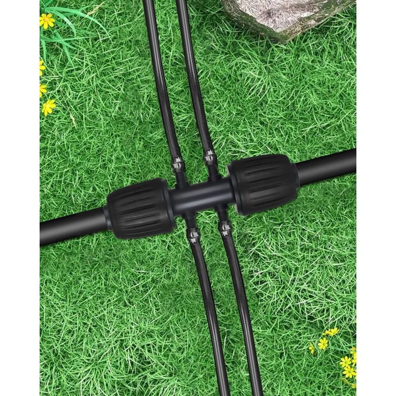 - High-Quality Material: Our barbed tee six-way adapter is made of high-quality, durable POM material that is environmentally friendly, safe, and UV-resistant. It's the ideal choice for all your irrigation needs and is made from recyclable materials.