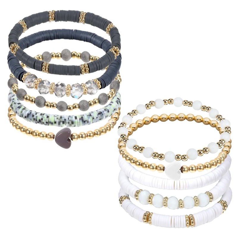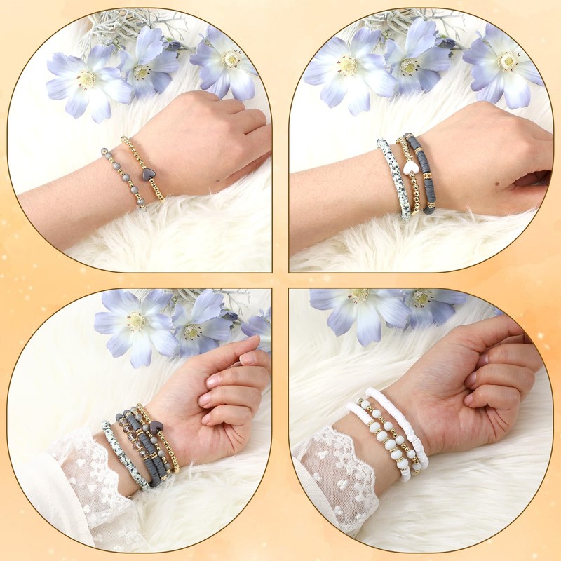 - Clay Bracelet Set: The clay beaded bracelet set contains 3 high-quality polymer clay bracelets, 1 gold bead bracelet and 1 gold bead glass bead chain bracelet, 1 set white and 1 set gray, which can be mixed and stacked.