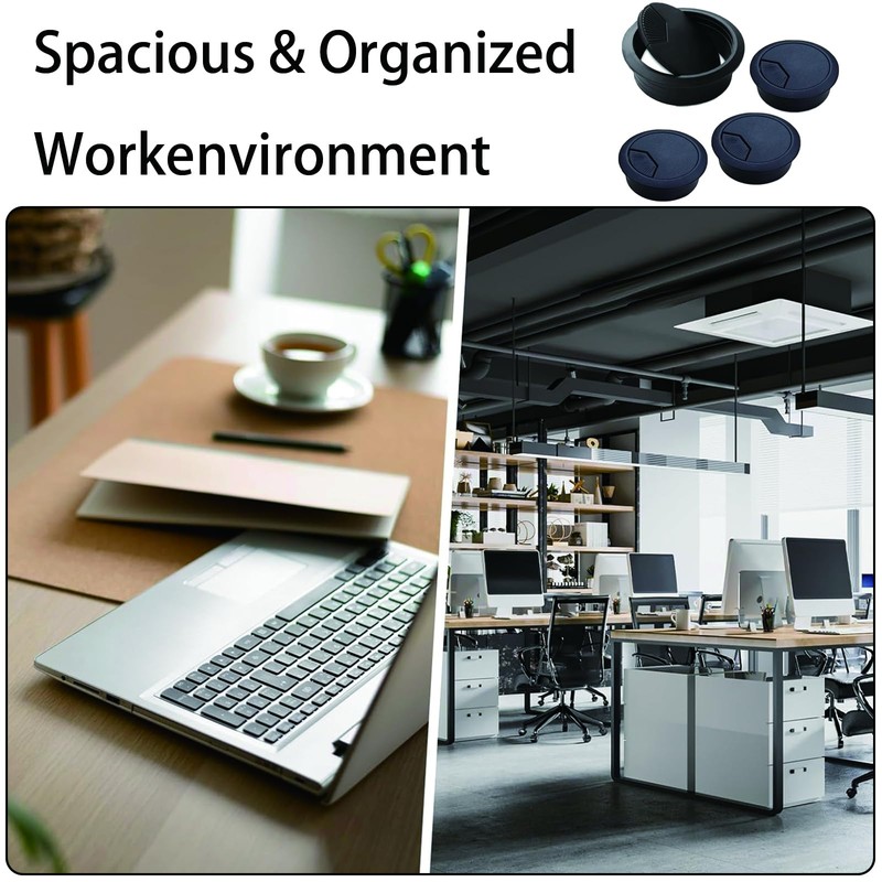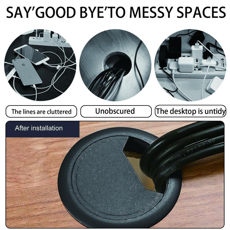 Desktop Cable: Suitable for computer office furniture equipment, computer desktop desks, cabinets, TV tables. The desk plug hole cover facilitates the cable to pass through and manages the cables and wires on the desk cleanly and neatly.