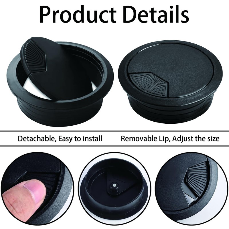 - Easy to Install: You can easily install the cable hole cover on your desk, the cover is removable and has a small opening, you can adjust the size of the opening by spring to get the right hole.