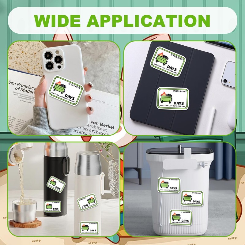- Unique and Interesting Design: Get rid of boring markers, the dumpster fire day count sticker combine elements of dumpster fires, dry erase markers, and work-related humor to record disastrous days. It's a fun addition to an active business or home.