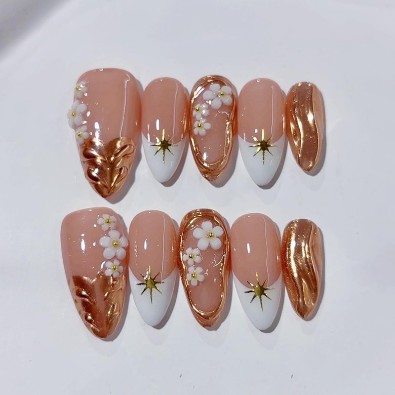 - Exquisite 3D Handmade Design: The color and pattern of these handmade fake nails are polished with gel - no ordinary printing texture! The almond shaped design combines elegance and practicality, making it easy to handle daily commuting and banquet occasions, adding customized refinement to every moment of your life