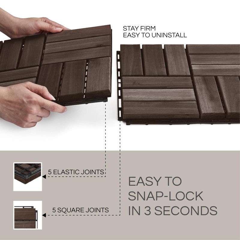 10 Pcs Interlocking Deck Tiles, Patio Flooring - Outdoor Waterproof Acacia Wood Tiles for All Weather Use - Balcony, Backyard, Indoor & Outdoor (Espresso, 10 Pcs - 12.1 Square Ft)