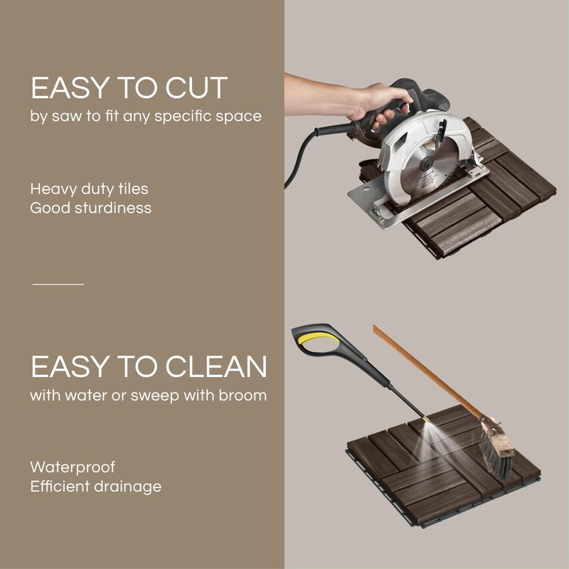 - π©ππ₯π¦ππ§πππ ππ‘π§ππ₯ππ’ππππ‘π ππππ π§ππππ¦ with the ease of customization you will find. They can be easily cut into small pieces to cover irregularly shaped areas, ensuring a seamless look for patio flooring, balcony flooring or garden pathway. Our wood flooring patio tiles adaptability extends usage to pool surrounds, outdoor kitchens or indoor areas like bathroom, and can even be temporarily laid down for outdoor events then quickly removed or rearranged.