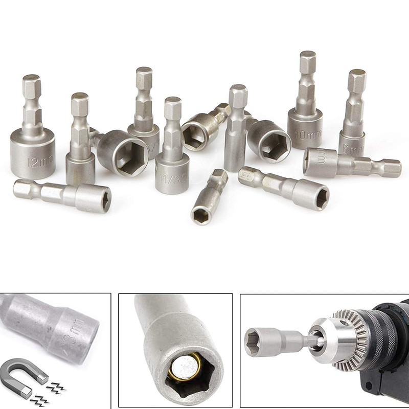 Suitable for a wide variety of quick-change chucks, electric hand drills and screwdrivers. The socket wrenches are put together by two plastic strips that are suitable for every tool box.