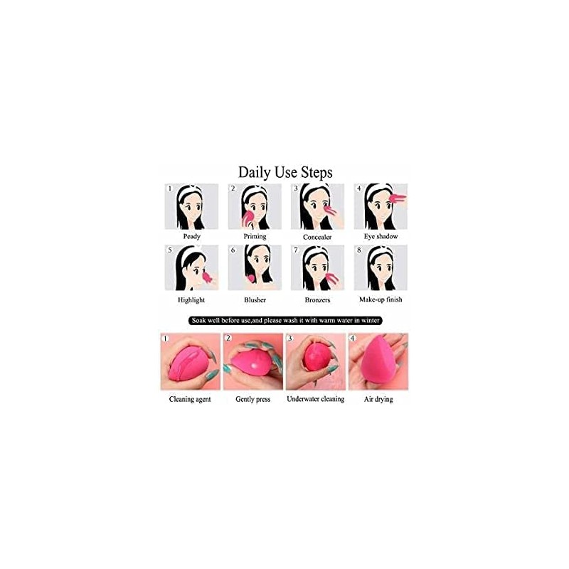 - đăWET OR DRY USEăFor both dry and wet use, you can moisten the sponge egg, and then absorb it with paper until it stops dripping. It is about 90% dry. The sponge egg becomes larger when exposed to water, which can increase the makeup speed, moisturize and conform.