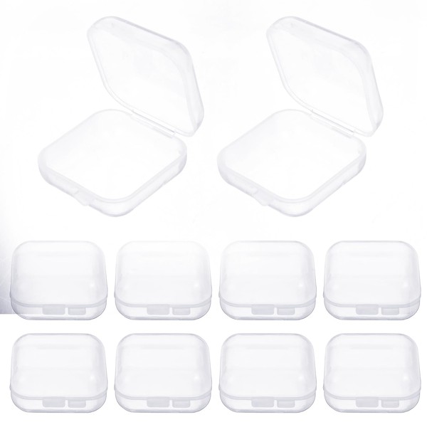 10 Pcs Mini Clear Plastic Box, 1.8 mm Thicken Transparent Storage Box with Hinged Lid, Ear Plug Case, Square Plastic Containers for Small Item Craft, Beads, Necklaces, Ear Studs, Rings