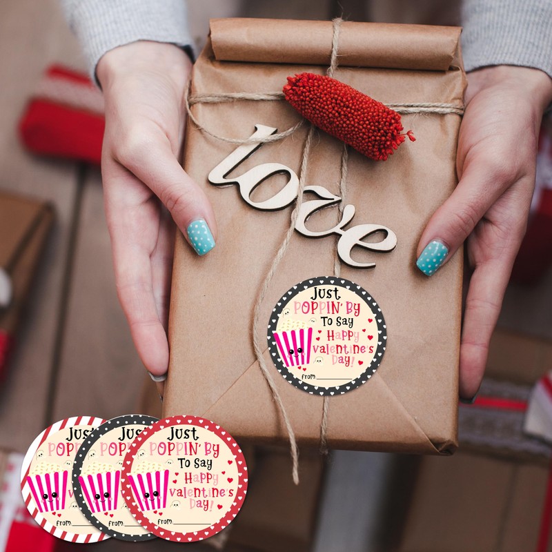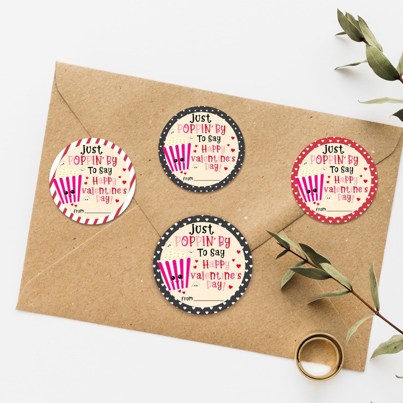 10 Pcs of 4 Different Design Valentine's Day Stickers, Just Poppin' by to Say Happy Valentine's Day, Suitable for Gift Boxes, Envelopes, Snack Seals, Valentine Party Supplies & Favor - A02
