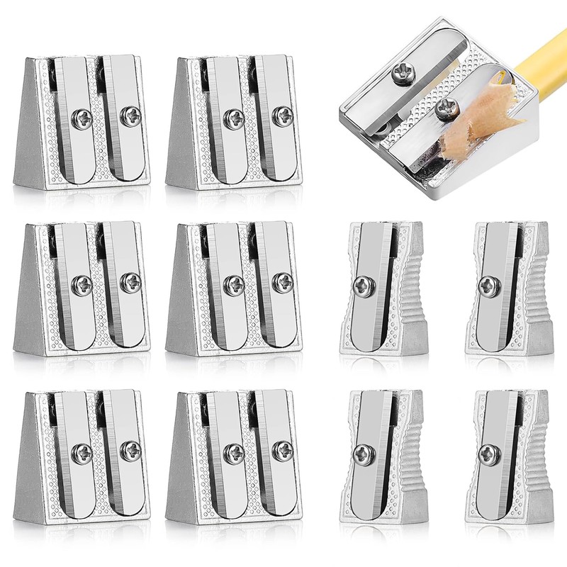 10 Pcs Pencil Sharpeners Set, 6 Pcs Double Hole & 4 Pcs Single Hole Metal Pencil Sharpener Manual Graphite Pencil Sharpener Handheld Crayon Sharpener for Home School Office Supplies