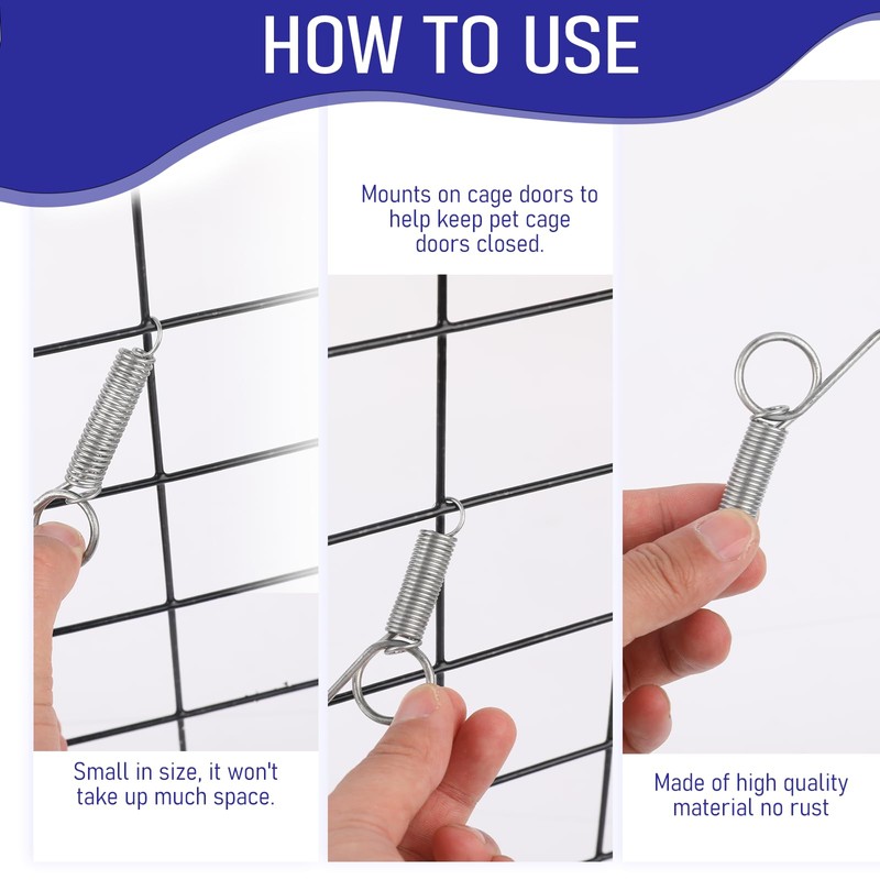 - High-Quality Materials: These spring latch is made of stainless steel, which are durable and suitable for locking pet cage doors. They are wear-resistant, flexible, strong, safe and practical, with good durability, not easy to wear or rust, and suitable for long-term use.