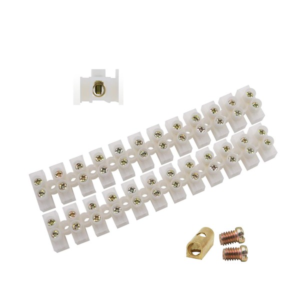 10 Pcs Terminal Block, 12 Position Dual Row Terminal Strip, White Screw Terminal Blocks Electrical Barrier Wire Connectors, 10Amp 220V
