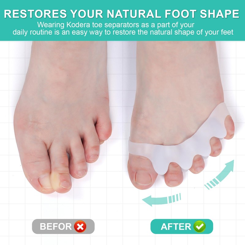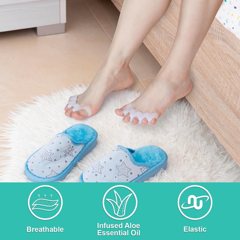 • 💝【Add aloe vera essential oil】To better adapt to your skin, we've added mild aloe vera essential oil to our toe spreaders. Our toe spacers added with aloe vera essential oil can fit your skin better and avoid your skin allergies. It simultaneously relieves pain and moisturizes.