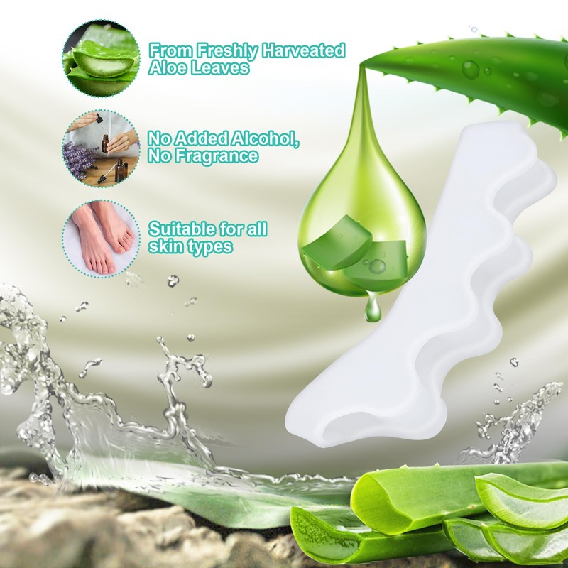 1. Add aloe vera essential oil:To better adapt to your skin, we've added mild aloe vera essential oil to our toe spreaders.