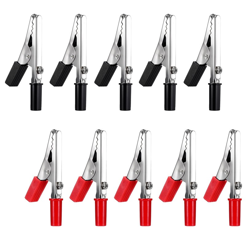- Efficient Workbench Organization Keep your workspace neat and efficient with this set of 10 alligator clips (5 red and 5 black). The clamps come neatly in a transparent storage box so they can be easily stored and retrieved when needed. These clamps are commonly used on different occasions and help organize electrical components, allowing you to work seamlessly on your projects.