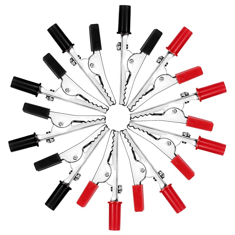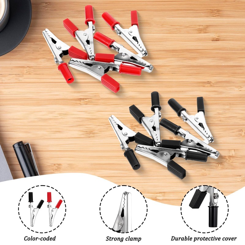 - DURABLE AND RELIABLE CONSTRUCTION These alligator clips are made of copper plated metal clamps with red and black ABS plastic coating and are designed for demanding tasks. The sturdy and rust-proof metal ensures long durability, making them suitable for various electrical or laboratory test applications. The spring loaded handle ensures that the clamps do not fall off after clamping.