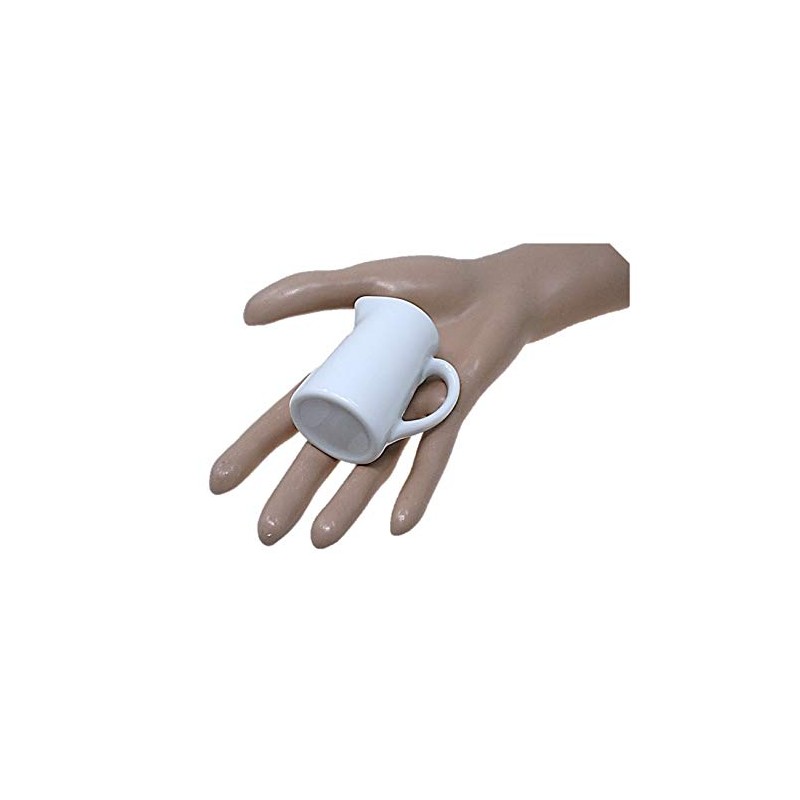 - Material: White porcelain (pure white) Texture: Glossy. Size: 2.3 inches (5.9 cm) (including mouth to handle) 1.6 inches (4 cm) (bottom circumference diameter); Height: 2.4 inches (6 cm); Capacity: Approx. 1.6 fl oz (45 cc)