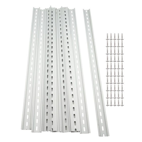 - Economic Pack: Comes with 10 pieces 12" long 35mm Wide, 7.5mm High aluminum DIN Rails, 50 customized screws.