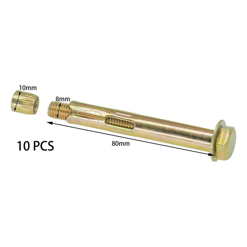- This set includes 10 hexagonal outer expansion bolts, each measuring M8 x 80mm.