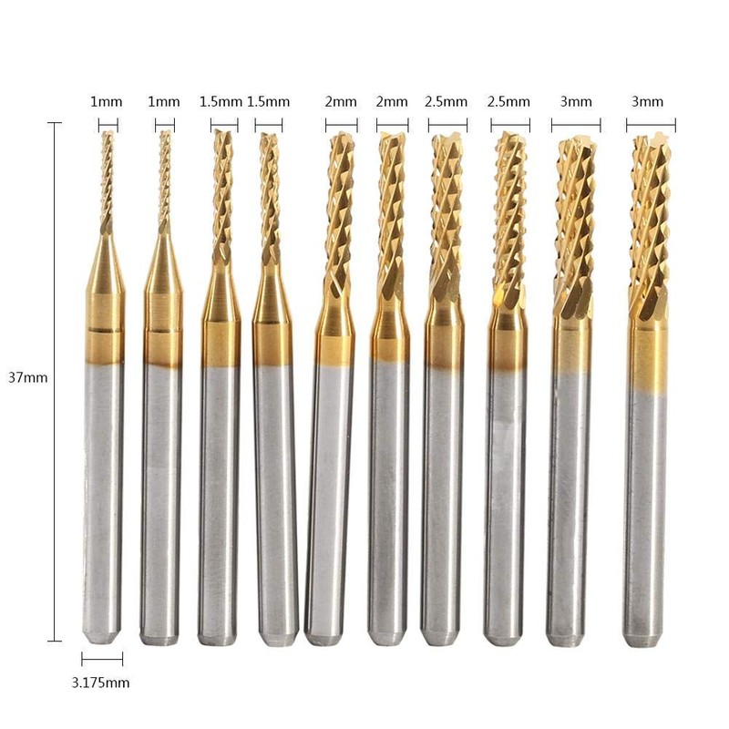 10 Pieces Milling Cutter 1.0-3.0 mm Titanium Coated End Mill Carbide CNC Cutt...