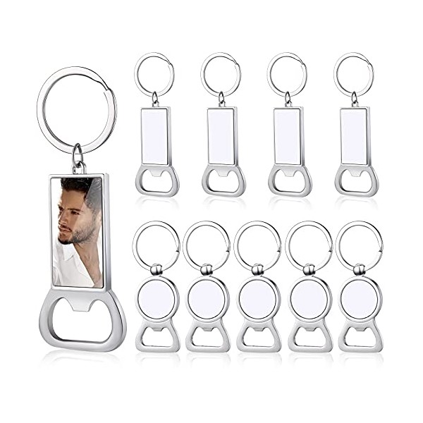 - Multiple quantity: you will receive 10 pieces sublimation metal bottle opener blank key rings, there are 2 styles, 5 for each style, enough to make a variety of DIY and artisan creations that you can share with your friends and family