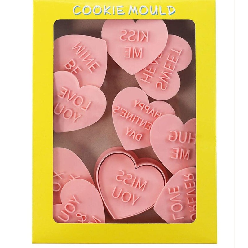 10 Pieces Valentine's Day Cookie Stamps Cookie Moulds For Baking Cookie Mould Love You Pink Heart Shape Cookie Mould Set Kitchen Tools (Valentine's Day B)