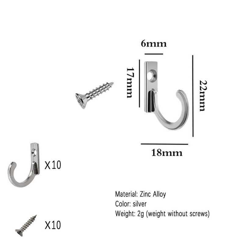 - Package included: 10 x Small Hooks with Screws.