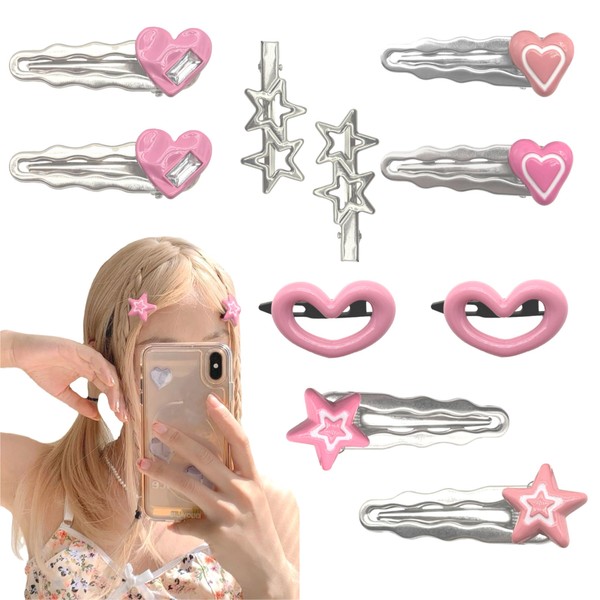 10 Pink Galaxy Sparkle Hair Clips, Cute and Sweet Clips in Heart Star Other Shapes Popular Hair Clips for Women Cute Girl Versatile Fashionable Item