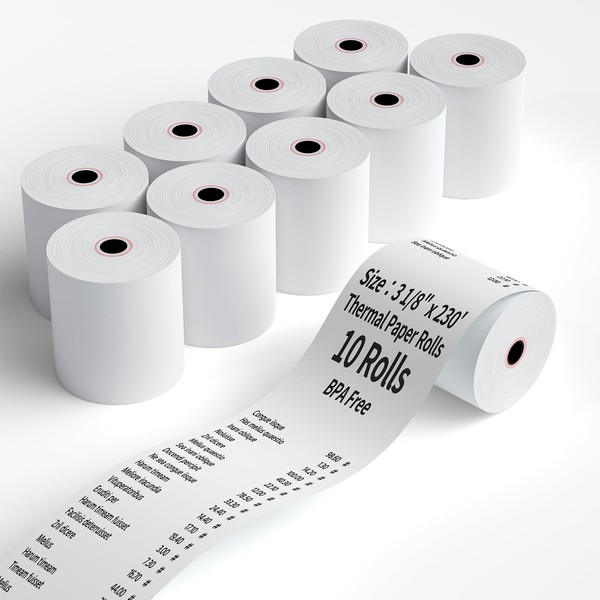 (10 Rolls) 3 1/8" x 230' Thermal Receipt Paper Rolls, BPA Free, Cash Register POS Thermal Paper Rolls, Credit Card Paper Rolls Thermal 3 1/8 in x 230 ft.