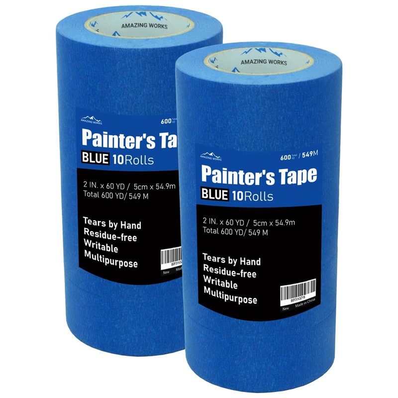 - Value pack: You will get 10 rolls of blue painters tape 2 inches wide, 60 yards each roll, total of 600 yards of painter's tape. Each 60-yard roll will be enough for covering one 15'x 15' Room. Perfect solution for preparing to paint your living or working environment.