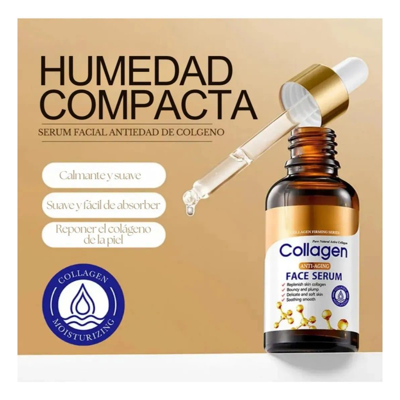 - Sérum facial enriquecido con colágeno, vitamina C, E, ácido hialurónico y ácido salicílico.
