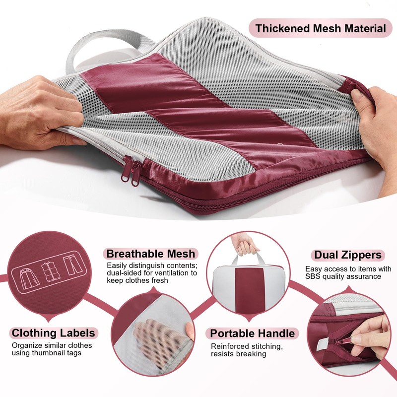 • Maximize Packing Efficiency - Make every inch of your luggage count! These compression cubes work like a mini vacuum sealer, using an extra outer zipper to reduce bulk and create more space. Pack more clothes without sacrificing options—your favorite outfits, now travel-ready.