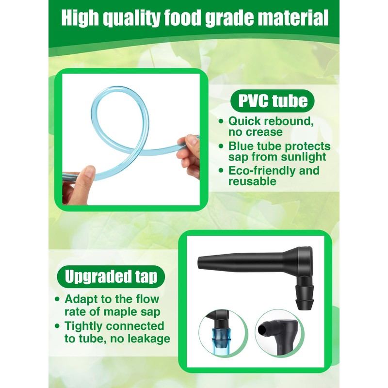 - 【Safe & Reliable Material】Made of food-grade PVC material with no odor, our maple syrup tree tubes are durable. The blue tubes is not only highly visible in the woods for easy tool location but also shields the maple syrup sap from sunlight, preserving its freshness.