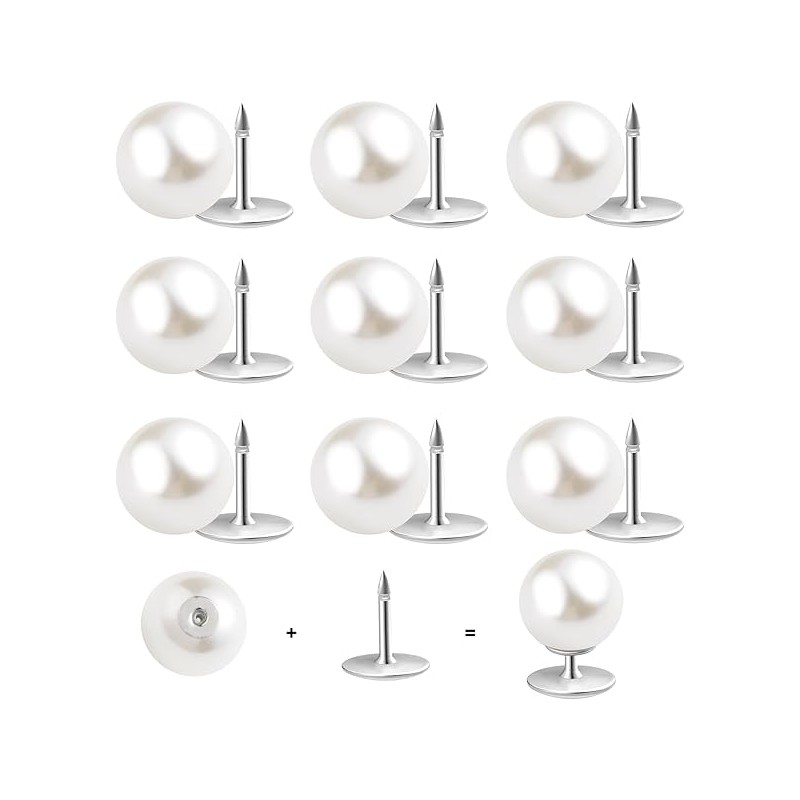 10 Sets Pearl Buttons No Sew Buttons Pearl Brooch Pins Fixed Pins No Tool Removable Reusable for Shirt Blouse Dress Sweater Shawl,for Women (10mm)
