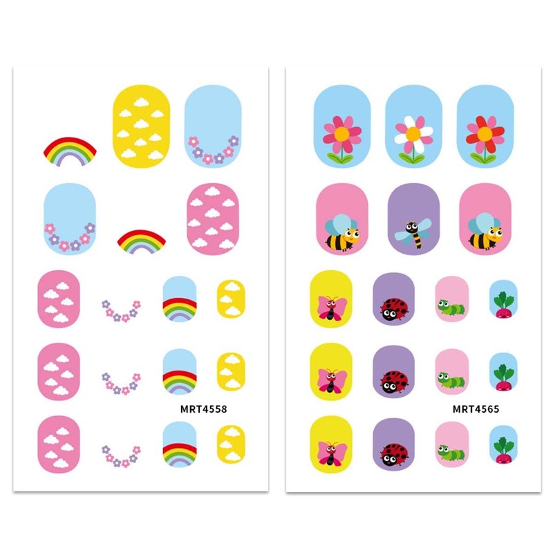 - Package Contain:10 sheets of nail polish strips for kids.Each nail strip includes 18 full nail wrap stickers.Crafted with child-friendly vinyl,gentle on child's delicate skin and nails