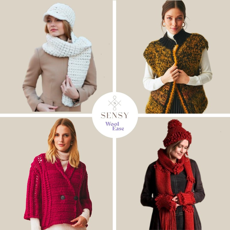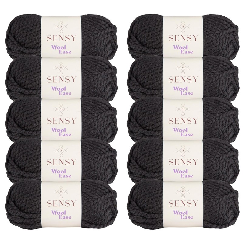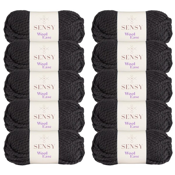 10 Skeins of Sensy Wool Ease Yarn, 3.5 oz, 66 Yards, Gauge 6 Super Bulky (Black)
