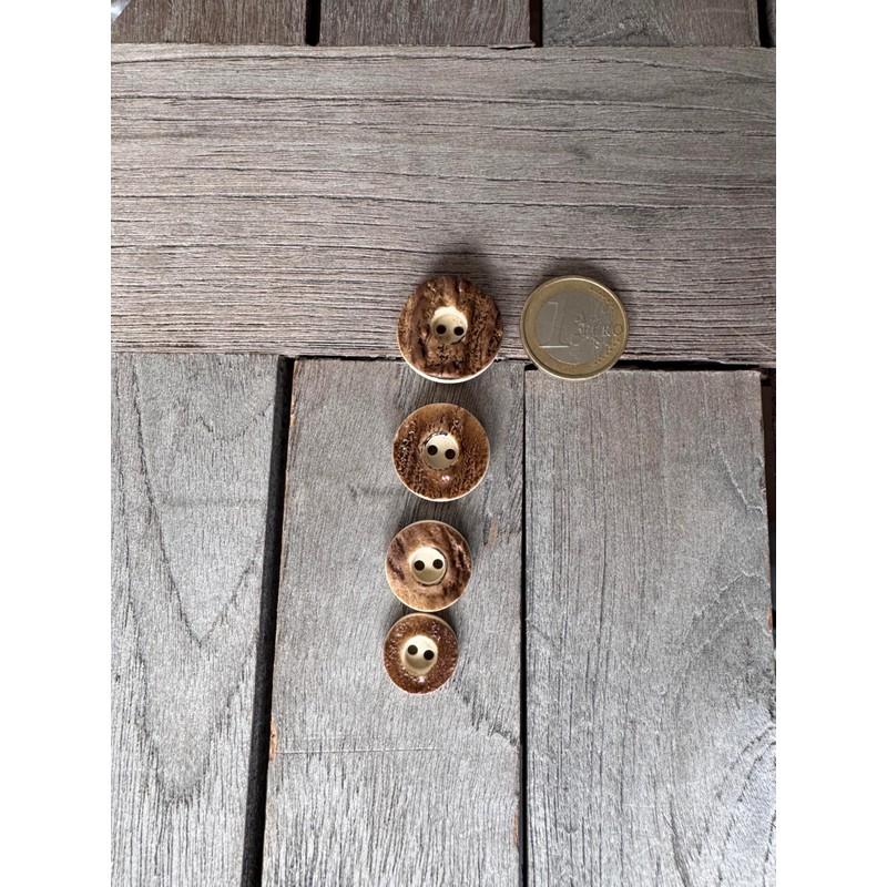 - Fast wie echt, aber das ist Kunststoff! Hirschhorn Imitat Knöpfe mit 2 Löchern zum Annähen. rund, mit unebener Oberfläche Größe ca. 15mm, 18mm, 20mm oder 22mm Farbe braun Lieferumfang: 1 Set = 10 Knöpfe made in Germany