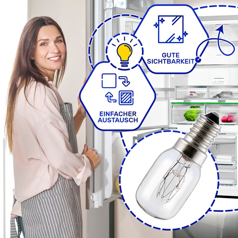 10 Stück Glühbirne E14 für Kühlschrank 15W 230V Kühlschranklampe mit dem Originalcode 481213418098 für Whirlpool 00602674 602674 für Bosch - MONTERAL