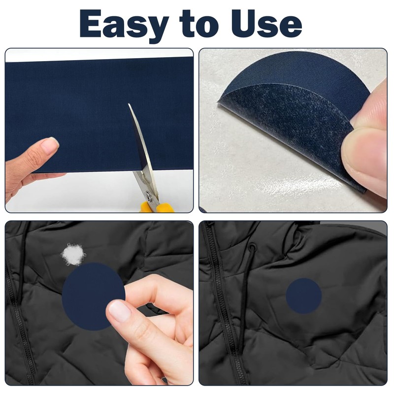 - Einfach zu Verwenden: Wählen sie einfach die richtige größe und kleben sie es auf die zu reparierende stelle, bügeln sie es 30 sekunden lang. sie müssen den flicken nicht nähen oder anderen zusätzlichen stoffkleber verwenden. der daunenjackenflicken ist sehr einfach anzubringen und zu verwenden