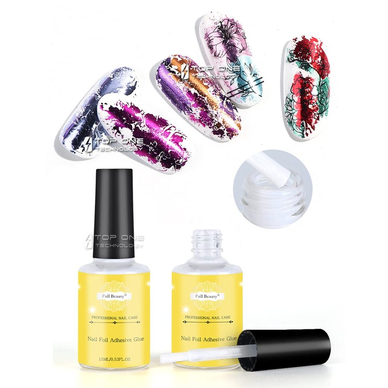 - Just apply foil adhesive glue (Star Glue) to nail. Before it dry, apply foil with the back side down and peel off. It is very easy to apply and make amazing patterns!