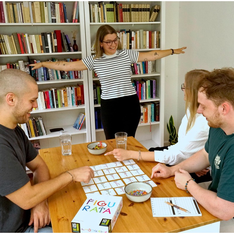 - Creative guessing game: Figurata is a fun party game for friends and family. Suitable for young and old, it promotes dexterity and creativity. Playable from 3 people, with extra team mode even suitable for larger groups of up to 10 people.