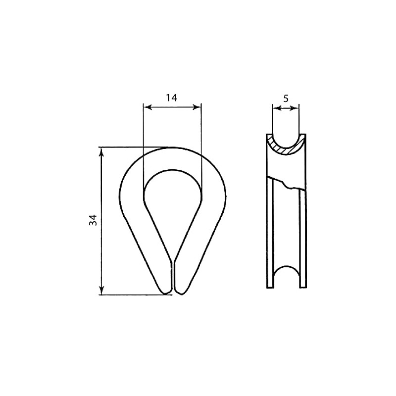 - Pack of 10 galvanised thimbles for rope 5 mm