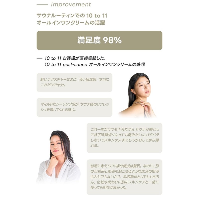 - In the "skin damaged after sauna", we researched and produced the best ingredients for fast recovery and heat damaged skin