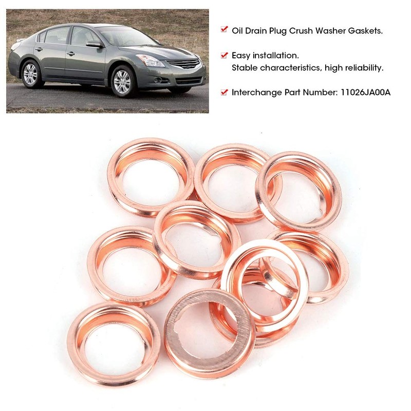 10 Uds Junta de Tapón de Drenaje de Aceite de Coche, Resistente Al Aceite 11026JA00A Arandelas de Trituración de Aceite de Motor Ligeras Y Fuertes Y Fiables para 2010-2011
