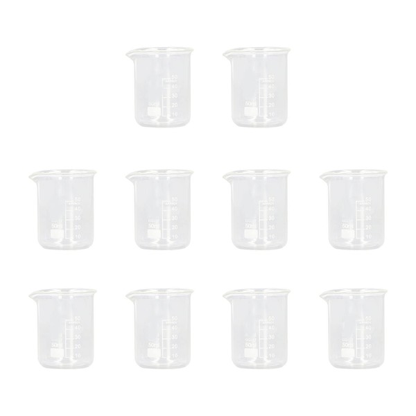 10 Uds Medidora de laboratorio 50ml Vasos de Precipitados de Vidrio de Laboratorio Taza de Medición de Escala Graduada Experimental