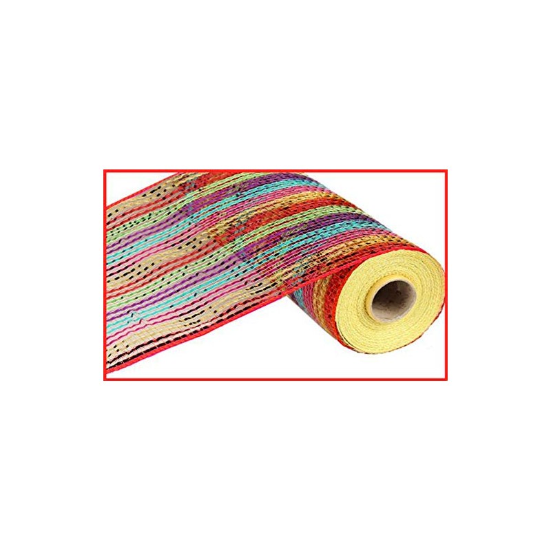 10" Wide Foil Stripes Poly Deco Mesh: Bright Multi (10 Yards) Floral Arrangement Gift Wrapping Wreath Mesh Ribbon