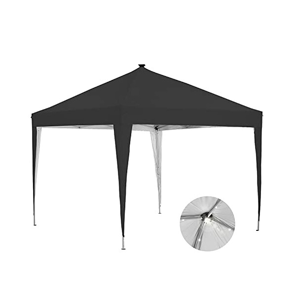 10 x 10 ft Pop-Up Canopy Tent Solar Power Led Light Portable Tailgating Party Tents Black