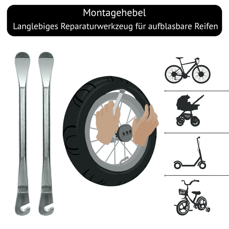 - Easy to use. Strong metal levers allow hard rubber to be released from the wheel of a stroller. The hose is finished with a special grit that allows for easy sliding during installation and assembly.