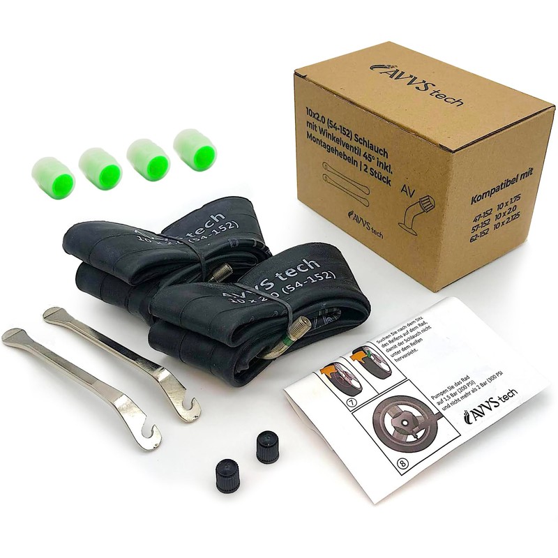 10 x 2 54-152 Pushchair Inner Tube 10 Inch 10 x 2 / 2.25 with Angle Valve 45° Including 2 Mounting Levers | Pack of 2 | for Pram Tyres 10 Inch 10 x 2.0 54 - 152